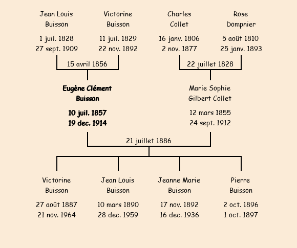 Mère : Victorine Buisson (ménagère) | Marraine : Clémentine Buisson (ménagère) |