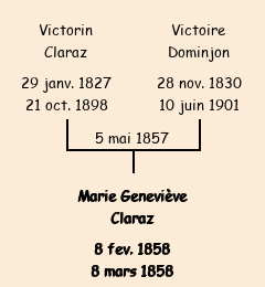 Mère : Victoire Dominjon (ménagère) | Marraine : Geneviève Claraz (ménagère) |