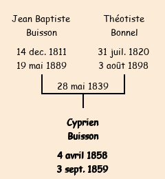 Mère : Théotiste Bonnel (ménagère) | Marraine : Séraphine Buisson (ménagère) |