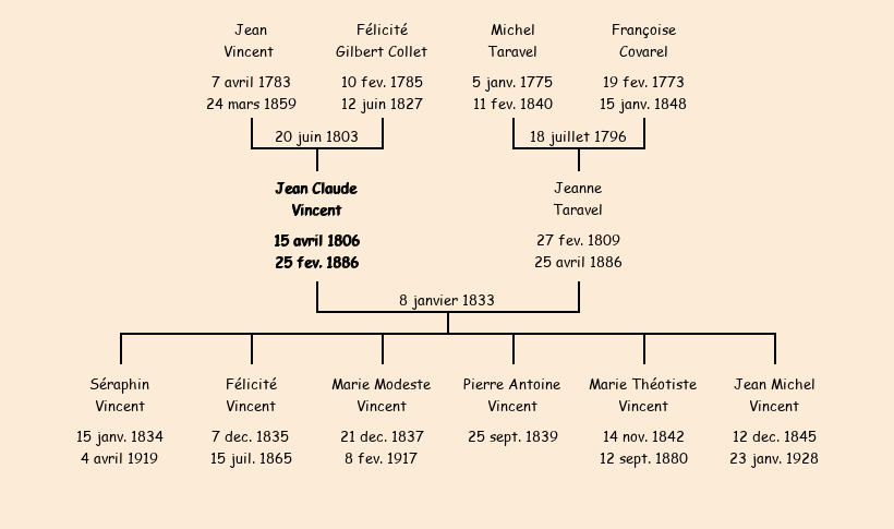 | Epoux : Jean Claude Vincent, fils de Jean et de feue Félicité Gilbert Collet |