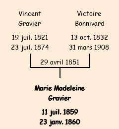 Mère : Victoire Bonnivard (ménagère) | Marraine : Madeleine Gravier (ménagère) |