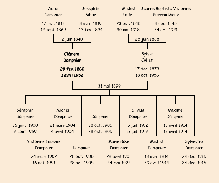 Témoins : Séraphin Dompnier fils de Charles Coppelle Victor décédé, 46 ans employé à la Cie des Chemins de Fer PLM né à Fontcouverte et domicilié 26 quai de Vaise à Lyon frère de l'époux, Pierre Dompnier fils de Charles Coppelle Victor décédé , 55 ans frère de l'époux, Jean Baptiste Collet fils de Michel, 23 ans, frère de l'épouse et Jean Baptiste Collet fils de Napoléon, 36 ans cousin germain de l'épouse |