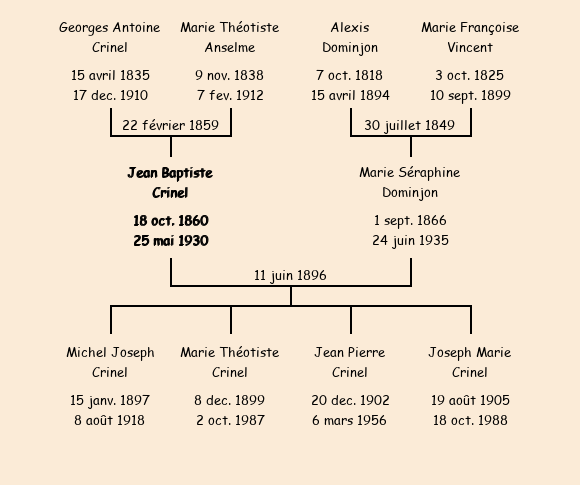 Jean Baptiste Crinel apparait dans le dénombrement de la population de 1896. |