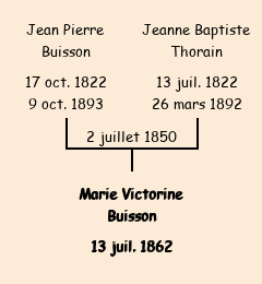 | Mère : Jeanne Baptiste Thorain (cultivatrice, 39 ans) | Marraine : Jeanne Marie Buisson |