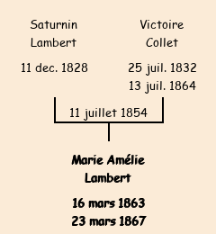 Père : Saturnin Lambert (marchand colporteur absent de la commune, 35 ans) | Parrain : Célestin Collet |