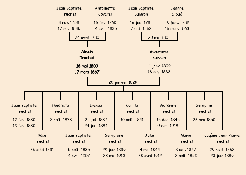 Epoux : Alexis Truchet, fils de Jean Baptiste et de Antoinette Covarel |