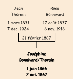 | Mère : Rose Bonnivard, fille de Alexis (cultivatrice, 27 ans) | Marraine : Séraphine Bonnel |