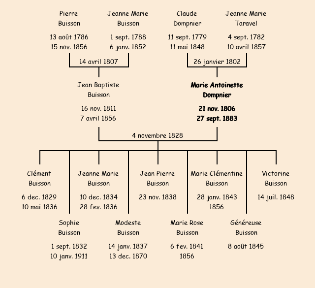 Epouse : Marie Antoinette Dompnier, fille de Claude et de Jeanne Marie Taravel |