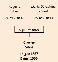 Père : Auguste Sibué, fils de Pierre Antoine (cultivateur, 30 ans, a signé) | Parrain : Placide Florentin Sibué (second prénom douteux) |