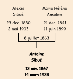 Antoine Sibué apparait dans le dénombrement de la population de 1881. |