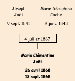Père : Joseph Joët, fils de Jean Michel (instituteur communal, 26 ans, né à Valmeinier (Savoie)) | Parrain : Clément Coche |