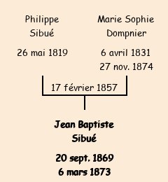 Père : Philippe Sibué, fils de Claude (cultivateur, 50 ans, a signé) | Parrain : Saturnin Dominjon |