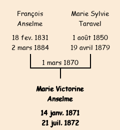 Marie Victorine Anselme apparait dans le dénombrement de la population de 1876. |
