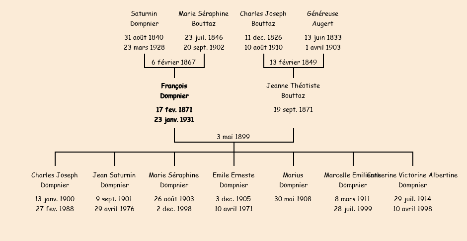 Mère : Marie Séraphine Bouttaz (24 ans) | Marraine : Jeanne Dompnier |