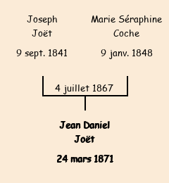 Père : Joseph Joët, fils de Jean Michel (iInstituteur communal, 29 ans, né à Valmeinier (Savoie)) | Parrain : Clément Coche |
