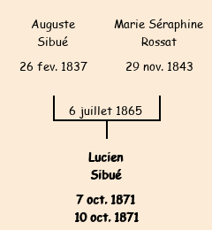 Père : Auguste Sibué, fils de Pierre Antoine (cultivateur, 35 ans, a signé) | Parrain : Lucien Dompnier |