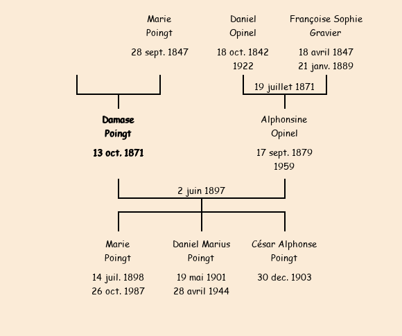 Damase Poingt apparait dans le dénombrement de la population de 1881. |