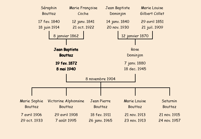 Père : Séraphin Bouttaz, fils de Saturnin (cultivateur, 32 ans) | Parrain : Joseph Albert Coche |