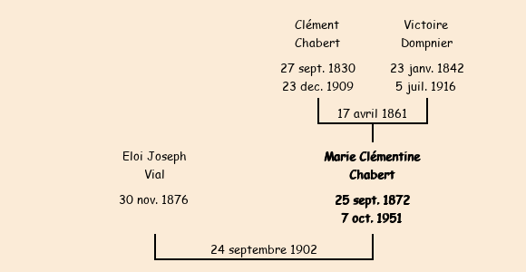 Mariée (29 ans) avec Eloi Joseph Vial (25 ans) le 24 septembre 1902 à Albiez-le-Jeune |