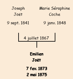 Père : Joseph Joët, fils de Jean Michel (instituteur, 31 ans, originaire de Valmeynier) | Parrain : Joseph Albert Coche |