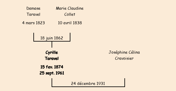 Père : Damase Taravel, fils de Jacques (meunier, 50 ans) | Parrain : Cyrille Léard |