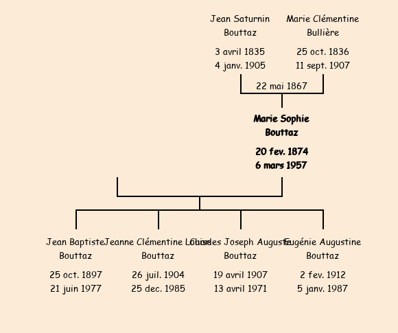Marie Sophie Bouttaz apparait dans le dénombrement de la population de 1876. |