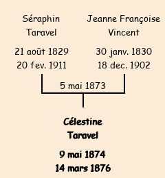 Père : Séraphin Taravel, fils de Pierre Antoine (cultivateur, 45 ans) | Parrain : Celestin Lambert |