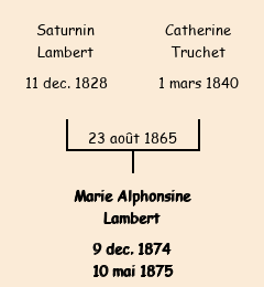 Mère : Catherine Truchet (ménagère, 35 ans) | Marraine : Marie Généreuse Lambert |