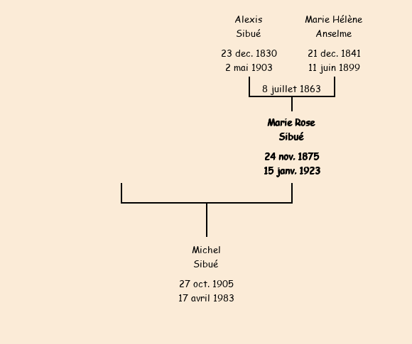 Père : Alexis Sibué, fils de Claude (cultivateur, 45 ans) | Parrain : Michel Sibué |