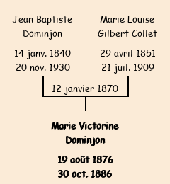 | Marie Victorine Dominjon apparait dans le dénombrement de la population de 1886. |