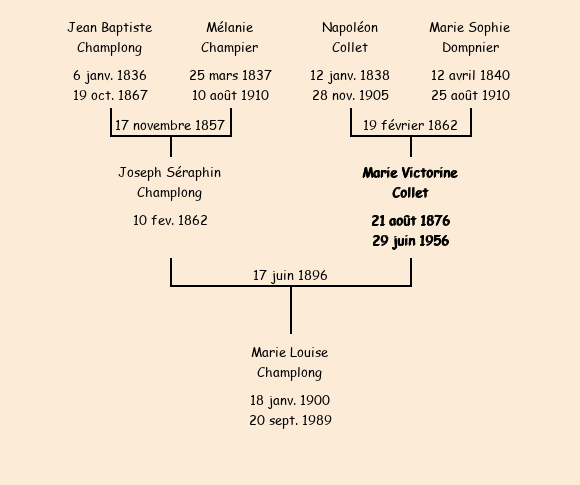 Marie Victorine Collet apparait dans le dénombrement de la population de 1876. |