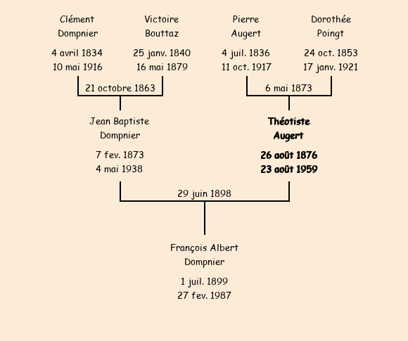 Théotiste Augert apparait dans le dénombrement de la population de 1876. |