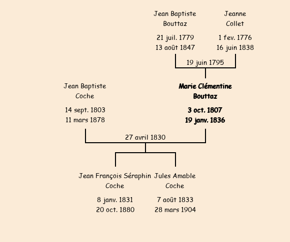 Epouse : Marie Clémentine Bouttaz, fille de Jean Baptiste et de Jeanne Collet |