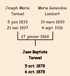 Mère : Marie Geneviève Lambert (cultivatrice, 39 ans) | Marraine : Marie Victorine Taravel |