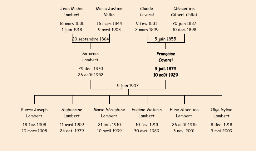 Epouse : Françoise Covarel (28 ans, née à la Rochette le 3 juillet1879), fille de Claude (décédé à La Rochette le 2 mars 1899) et de Clémentine Gilbert Collet (décédée le 10 décembre1898) |