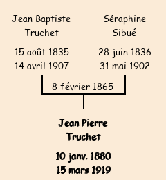 Père : Jean Baptiste Truchet, fils de Alexis (cultivateur, 45 ans) | Parrain : Louis Sibué |