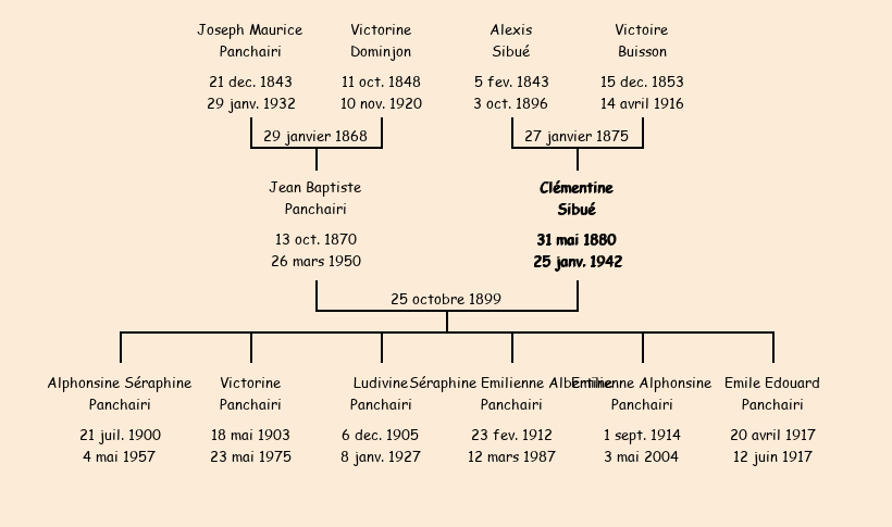 Mariée (19 ans) avec Jean Baptiste Panchairi (29 ans) le 25 octobre 1899 à Fontcouverte ![]() |