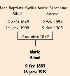 Père : Cyrille Jean Baptiste Sibué, fils de Apolllinaire (cultivateur, 37 ans) | Parrain : Jean Adreyt |