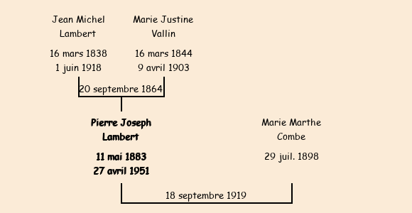 Marié (36 ans) avec Marie Marthe Combe (21 ans) le 18 septembre 1919 à Lyon |