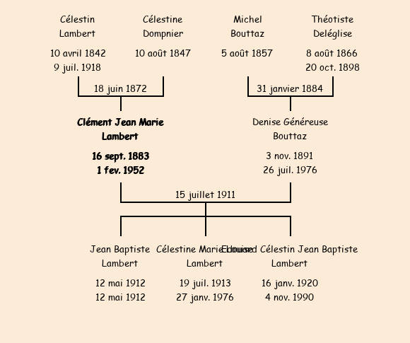 | Père : Célestin Lambert, fils de Pierre (cultivateur, 41 ans) | Parrain : Jean Pierre Lambert |