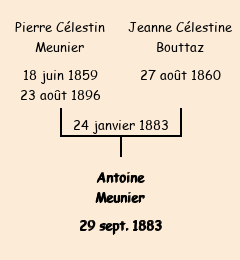 Père : Pierre Célestin Meunier, fils de Jean Baptiste (cultivateur, 24 ans) | Parrain : Jean Baptiste Meunier (54 ans) |