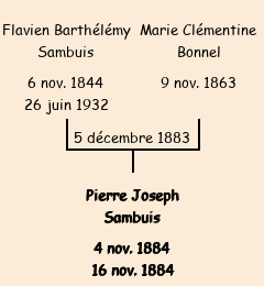 Père : Flavien Barthélémy Sambuis, fils de Jean Baptiste | Parrain : François Sambuis |