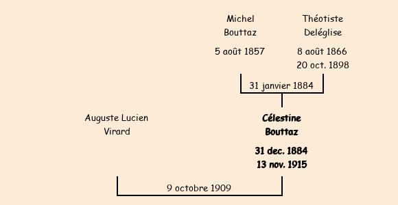 Mariée (24 ans) avec Auguste Lucien Virard le 9 octobre 1909 à Saint-Jean-de-Maurienne |