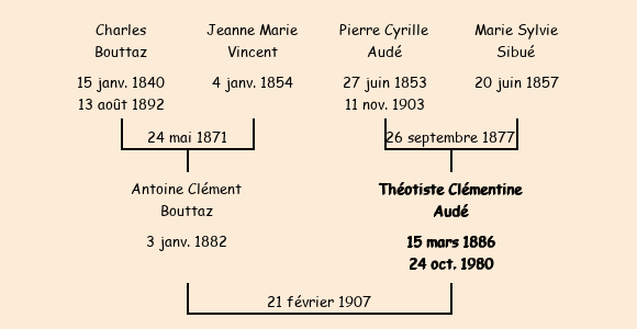 Mariée (20 ans) avec Antoine Clément Bouttaz (25 ans) le 21 février 1907 à Saint-Jean-de-Maurienne |