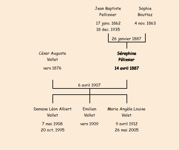 Mariée (19 ans) avec César Auguste Vallet (31 ans) le 6 avril 1907 à Saint-Jean-de-Maurienne |