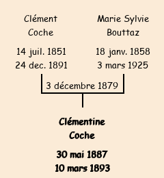 Père : Clément Coche, fils de Jean Baptiste (cultivateur, 36 ans) | Parrain : Clément Bouttaz |
