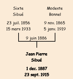 | Père : Sixte Sibué, fils de Pierre (cultivateur, 31 ans) | Parrain : Louis Marie Bonnel |