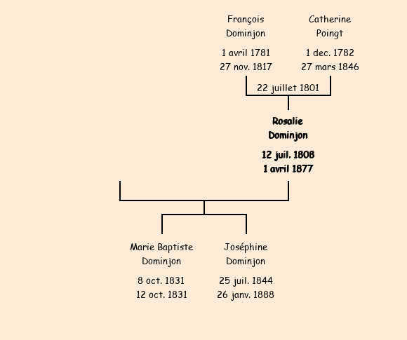Père : François Dominjon | Parrain : Jean Baptiste Dominjon (fils de Noémi , frère de la marraine) |