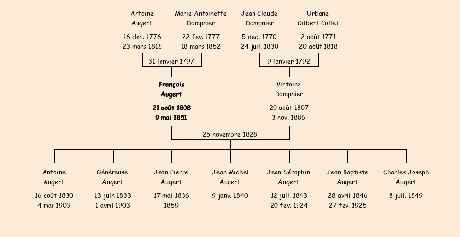 Epoux : François Augert, fils de feu Antoine et de Marie Antoinette Dompnier |
