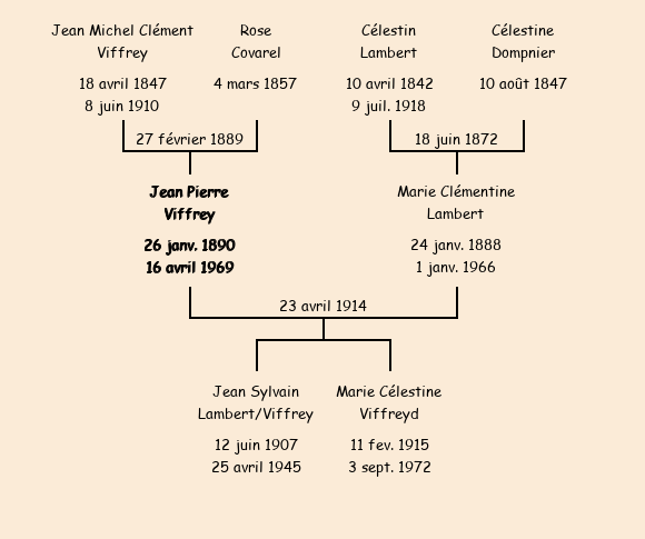 Epoux : Jean Pierre Viffreyd (né à Fontcouverte le 26 janvier 1890, domicilié à la Crousaz), fils de feu Michel Clément et de Rose Covarel (de La Crousaz) |